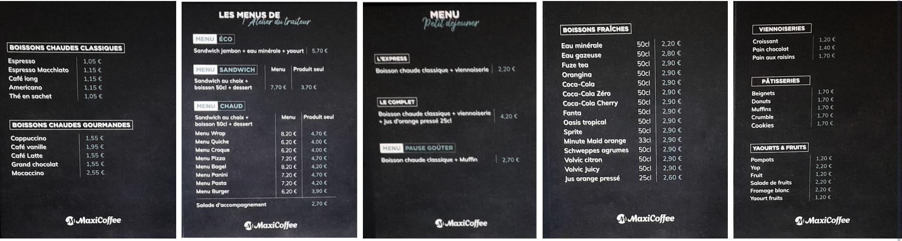 - Paiements acceptés au comptoir du café : espèces et carte bancaire.
